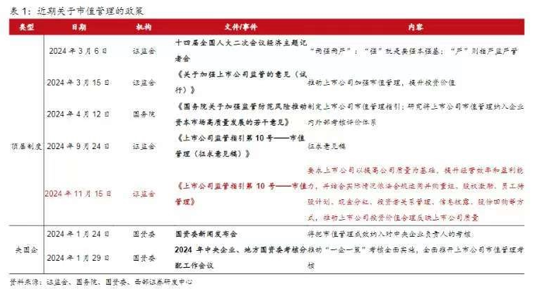 11月15日,证监会发布施行《上市公司监管指引第10号——市值管理》,该《指引》的发布,使得市场对上市公司质量提升的期待愈发高涨,也让2024年成为市值管理元年。有机构表示,《指引》的出台,不仅为资本市场监管体系的完善迈出了重要一步,也为投资者提供了一个更加健康和透明的市场环境。